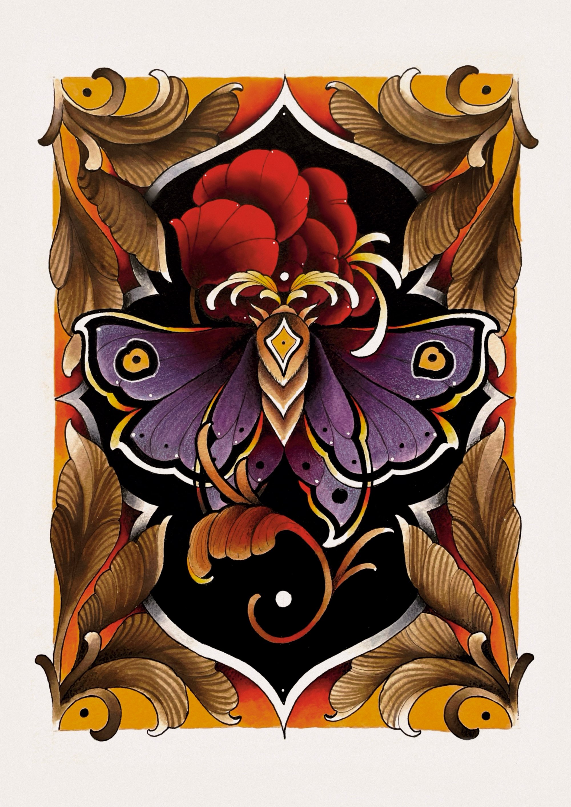 “Butterfly” is printed on a A4 / A3 watercolor paper 300gr. The drawing is hand-made with mix techniques on paper in 2023.