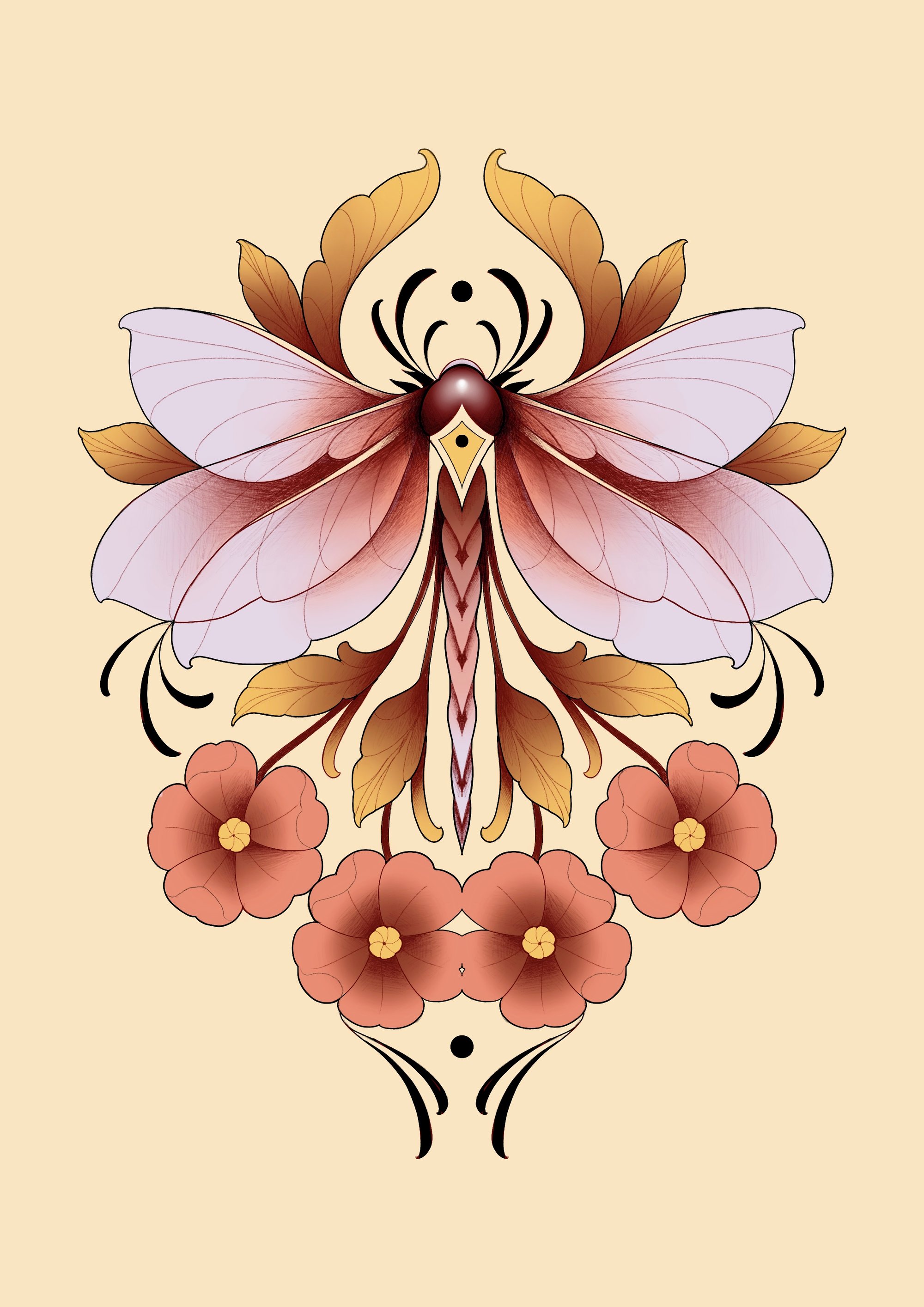 “Sweet Dragonfly ” is printed on a A4/A3 watercolor paper 300gr. The drawing is a digital painting, made in 2024.