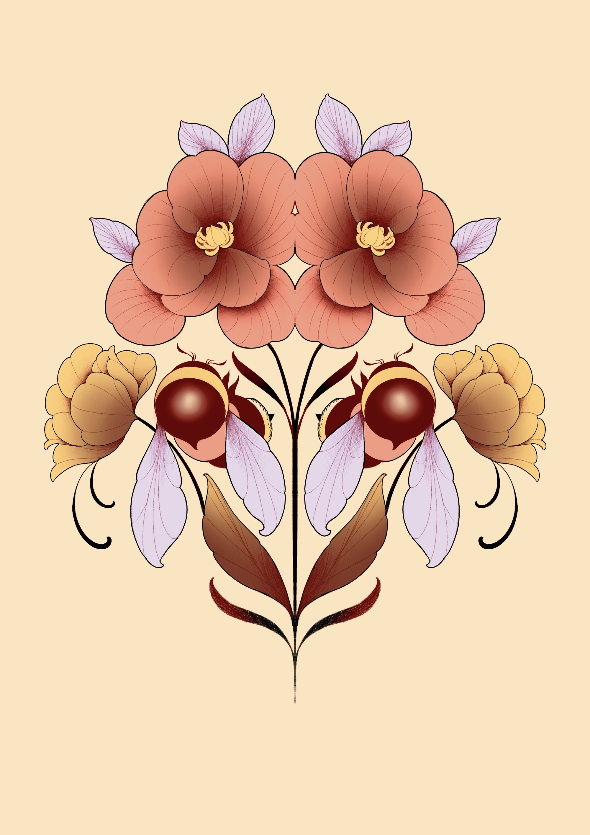 “Sweet bumblebees ” is printed on a A4/A3 watercolor paper 300gr.
